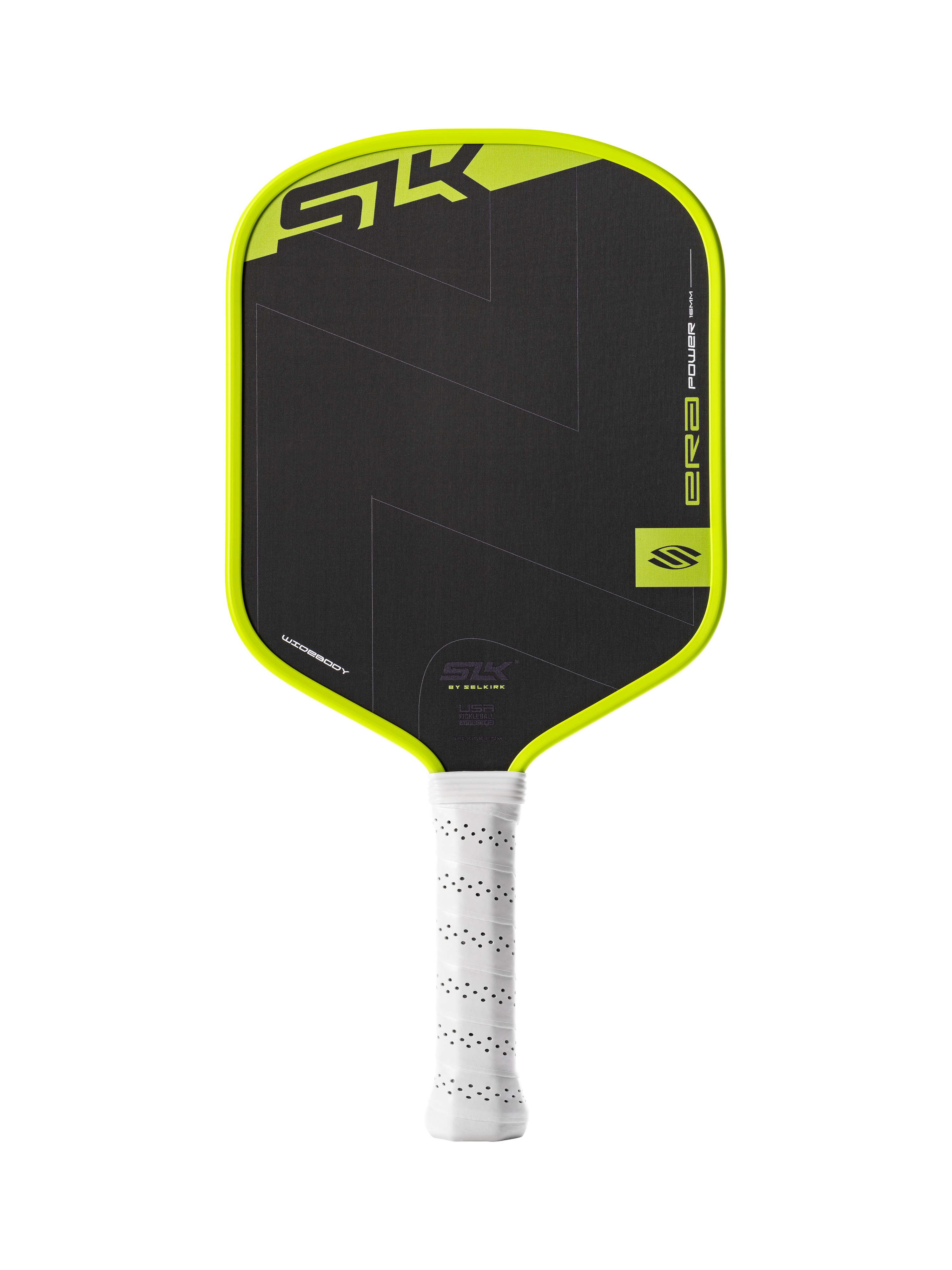 Finally, a power paddle that you can trust. Selkirk invested in building a power paddle with more intense quality control and a one-year warranty. It’s time to turn up the power. The SLK ERA Power delivers lively power with a massive sweet spot, serving players with aggressive play styles. Hard drives. Spin-heavy shots. The type of velocity that catches opponents off guard. It’s designed with a new Dynamic Fusion Core — polypropylene honeycomb surrounded by closed-cell, low-density EVA foam — which offers a stable feel with lasting durability. Its dwell time and spin help you place the ball where you want it in the soft game, just before you flex its power for the put-away. Power that can be heard and felt, keeping up with fast and competitive play. The 3-Layered Face puts emphasis on your shots with stiffness and rigidity for power, while maintaining flex and durability for a consistent feel. This paddle is for the players who don’t hold back, whether in a tournament or recreationally. The players who bring the energy and want their paddle to do the same. As pickleball continues to evolve, more players are looking for power in their paddles. The challenge? Some power paddles lack a generous sweet spot and proper quality control — they launch balls long, punish off-center hits with inconsistent feel, and break down quickly. Here’s the solution: the SLK ERA Power uses an advanced Dynamic Fusion Core for increased stability and forgiveness without sacrificing lively power. Its quality is backed by our SLK 1-year limited warranty — just because you play hard, doesn’t mean your paddle should wear out quickly. This core is paired with a 3-Layered Face — a strategic weave of fiberglass and T700 Raw Carbon Fiber — making this a power-first paddle with spin and feel to back it up. Power from the baseline. Pop at the net. Sweet spot for dinks. Spin exceeding 2,000 RPM. Built for hard drives and spin-loaded shots that force your opponents to react on your terms, the SLK ERA Power adds serious velocity to your game — while maintaining soft touch when you need it most. Available in two paddle shapes. Widebody | Longer Handle & Wide Paddle Shape: The widebody shape features a longer handle for added reach and extra space for two-handed backhands. This shape enhances stability and delivers a more consistent, forgiving sweet spot — especially on off-center hits. Ideal for players seeking the largest sweet spot and a consistent feel and performance across the face. Elongated | Longer Handle & Longest Paddle Shape: Give yourself a better chance on balls you have to reach for. The longer handle has ample room for two-handed backhands, while the elongated shape delivers greater plow-through and power on every shot. Dynamic Fusion Core for Stability and Forgiveness. A low-density EVA foam perimeter with composite edge reinforcements encapsulates the polypropylene honeycomb core, forming a fusion core. By distributing mass towards the edges, the ERA Power's construction increases the paddle's stability — resulting in a more forgiving sweet spot for off-center contact. This Dynamic Fusion Core is engineered to give you power on your attacks with a large sweet spot you can trust. 3-Layered Face for a Dynamic Blend of Power and Spin. This face blends woven fiberglass and T700 Raw Carbon Fiber to enhance velocity and spin. This balances rigidity and flex that results in added power and durability needed for performance consistency. Reinforced Edge Technology for Durability and Increased Sweet Spot. Reinforced Edge Technology protects your paddle by increasing edge durability. It also avoids twisting, helping with the overall paddle stability while expanding the sweet spot. Raw Spin Technology Surface for Enhanced Spin. Our Raw Spin Technology is a raw, textured surface designed to enhance spin and improve ball control. Octagonal Handle for Better Control. The upgraded octagonal grip offers greater maneuverability and shot accuracy on the court. Widebody Skill level: Intermediate to Advanced Average weight: 8.0-8.3 oz Grip length: 5.6” Grip circumference: 4.25” Average swing weight: 109 Average twist weight: 7.3 Paddle height: 15.95” Paddle width: 8.0” Core thickness: 16mm Core material: Polypropylene surrounded by EVA Foam Sweet spot size: 9 Warranty: 1-year warranty Ratings: Power: 8.5/10 Spin: 9/10 Control: 7.5/10