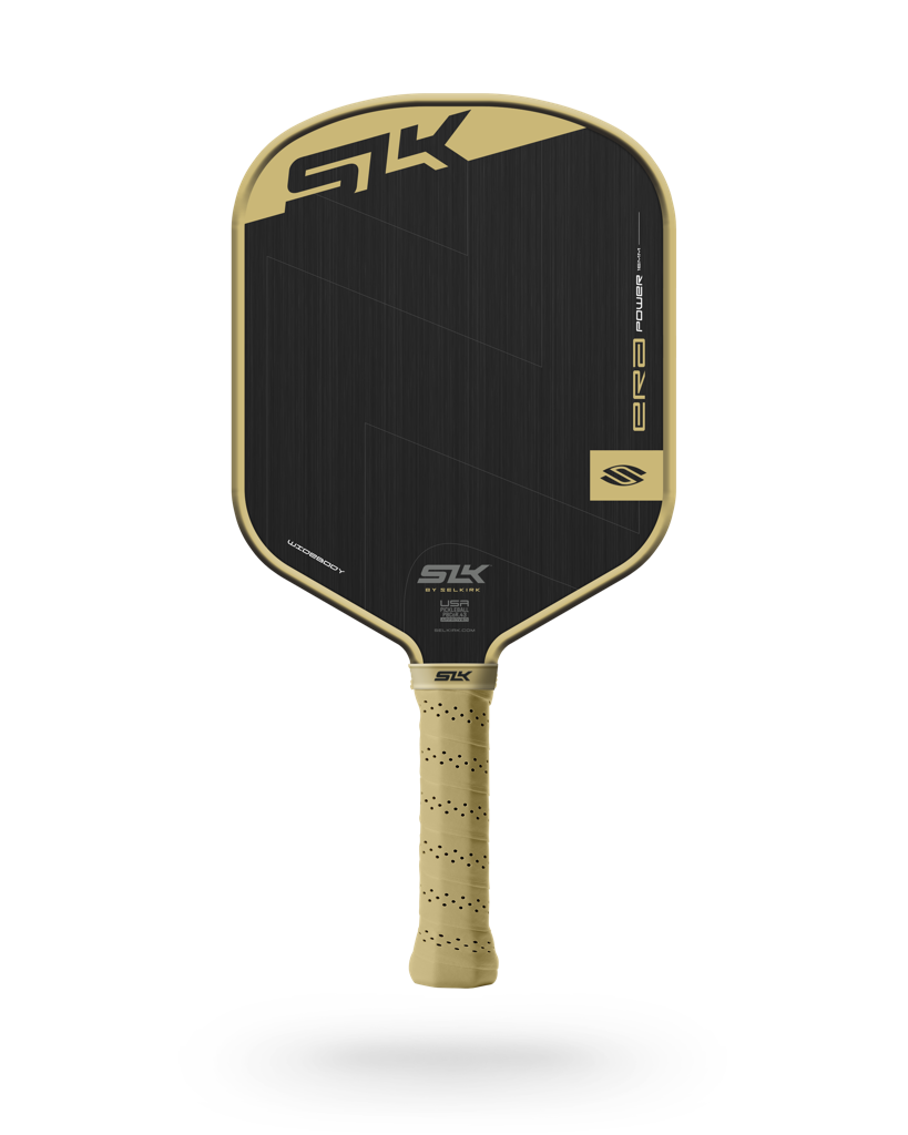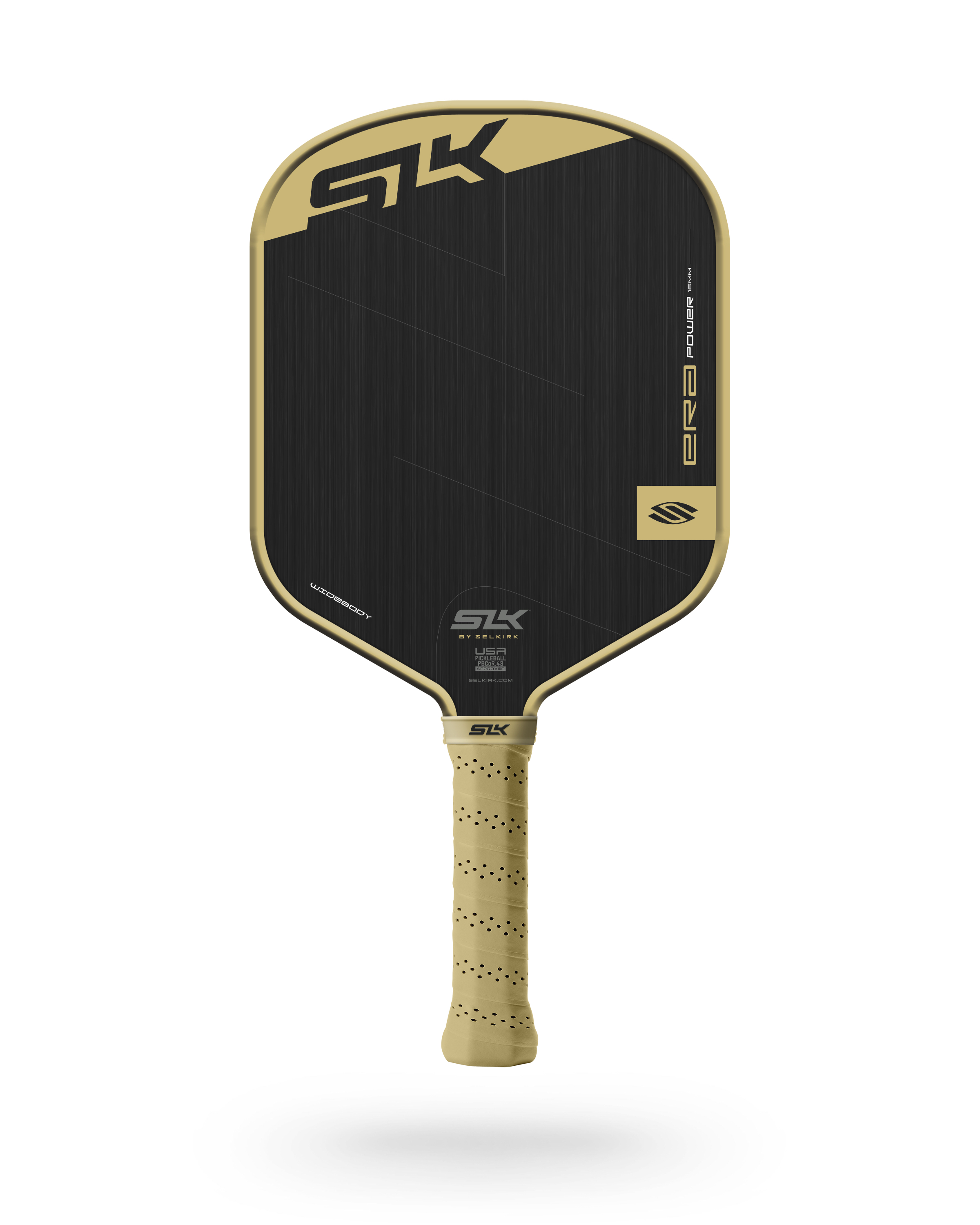 Finally, a power paddle that you can trust. Selkirk invested in building a power paddle with more intense quality control and a one-year warranty. It’s time to turn up the power. The SLK ERA Power delivers lively power with a massive sweet spot, serving players with aggressive play styles. Hard drives. Spin-heavy shots. The type of velocity that catches opponents off guard. It’s designed with a new Dynamic Fusion Core — polypropylene honeycomb surrounded by closed-cell, low-density EVA foam — which offers a stable feel with lasting durability. Its dwell time and spin help you place the ball where you want it in the soft game, just before you flex its power for the put-away. Power that can be heard and felt, keeping up with fast and competitive play. The 3-Layered Face puts emphasis on your shots with stiffness and rigidity for power, while maintaining flex and durability for a consistent feel. This paddle is for the players who don’t hold back, whether in a tournament or recreationally. The players who bring the energy and want their paddle to do the same. As pickleball continues to evolve, more players are looking for power in their paddles. The challenge? Some power paddles lack a generous sweet spot and proper quality control — they launch balls long, punish off-center hits with inconsistent feel, and break down quickly. Here’s the solution: the SLK ERA Power uses an advanced Dynamic Fusion Core for increased stability and forgiveness without sacrificing lively power. Its quality is backed by our SLK 1-year limited warranty — just because you play hard, doesn’t mean your paddle should wear out quickly. This core is paired with a 3-Layered Face — a strategic weave of fiberglass and T700 Raw Carbon Fiber — making this a power-first paddle with spin and feel to back it up. Power from the baseline. Pop at the net. Sweet spot for dinks. Spin exceeding 2,000 RPM. Built for hard drives and spin-loaded shots that force your opponents to react on your terms, the SLK ERA Power adds serious velocity to your game — while maintaining soft touch when you need it most. Available in two paddle shapes. Widebody | Longer Handle & Wide Paddle Shape: The widebody shape features a longer handle for added reach and extra space for two-handed backhands. This shape enhances stability and delivers a more consistent, forgiving sweet spot — especially on off-center hits. Ideal for players seeking the largest sweet spot and a consistent feel and performance across the face. Elongated | Longer Handle & Longest Paddle Shape: Give yourself a better chance on balls you have to reach for. The longer handle has ample room for two-handed backhands, while the elongated shape delivers greater plow-through and power on every shot. Dynamic Fusion Core for Stability and Forgiveness. A low-density EVA foam perimeter with composite edge reinforcements encapsulates the polypropylene honeycomb core, forming a fusion core. By distributing mass towards the edges, the ERA Power's construction increases the paddle's stability — resulting in a more forgiving sweet spot for off-center contact. This Dynamic Fusion Core is engineered to give you power on your attacks with a large sweet spot you can trust. 3-Layered Face for a Dynamic Blend of Power and Spin. This face blends woven fiberglass and T700 Raw Carbon Fiber to enhance velocity and spin. This balances rigidity and flex that results in added power and durability needed for performance consistency. Reinforced Edge Technology for Durability and Increased Sweet Spot. Reinforced Edge Technology protects your paddle by increasing edge durability. It also avoids twisting, helping with the overall paddle stability while expanding the sweet spot. Raw Spin Technology Surface for Enhanced Spin. Our Raw Spin Technology is a raw, textured surface designed to enhance spin and improve ball control. Octagonal Handle for Better Control. The upgraded octagonal grip offers greater maneuverability and shot accuracy on the court. Widebody Skill level: Intermediate to Advanced Average weight: 8.0-8.3 oz Grip length: 5.6” Grip circumference: 4.25” Average swing weight: 109 Average twist weight: 7.3 Paddle height: 15.95” Paddle width: 8.0” Core thickness: 16mm Core material: Polypropylene surrounded by EVA Foam Sweet spot size: 9 Warranty: 1-year warranty Ratings: Power: 8.5/10 Spin: 9/10 Control: 7.5/10